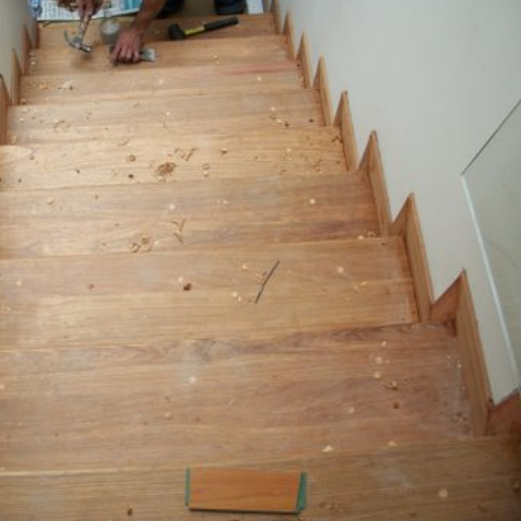 Instalamos con adhesivo de alta resistencia y tornillo entre el machihembrado fijado a la placa, garantizando: Cero ruidos No se afloja con el tiempo Línea recta y sin separaciones